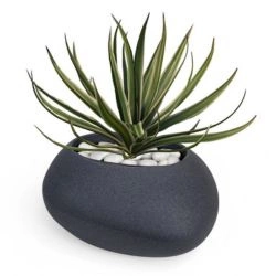 Okrągła donica niska z włókna szklanego Koral wys. 28 cm średnica 47 cm, czarna