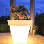 Korzystając z naszej oferty, możesz wybierać spośród wielu modeli donic dekoracyjnych uzupełnionych energooszczędnymi diodami LED, przeznaczonych do podświetlania roślin zielonych, kwiatów lub niewielkich drzewek ozdobnych. Oferujemy donice podświetlane wykonane z charakteryzującego się dużą wytrzymałością włókna szklanego oraz innych materiałów syntetycznych odpornych na wilgoć, nadających się do stosowania w pomieszczeniach zamkniętych i na świeżym powietrzu. Możesz wybrać ich wersję z dnem pojedynczym lub podwójnym, najlepiej z odpływem wody - odpływ wykonasz samodzielnie, ewentualnie przygotujemy go za Ciebie, jeśli wspomnisz nam o tym w zamówieniu. Do wnętrz polecamy donice podświetlane z kółkami transportowymi, co znacząco ułatwia ich przesuwanie, tym samym zapewniając większy komfort podczas zmywania podłóg. W ofercie firmy Forvega czekają na Ciebie ozdobne donice podświetlane do ogrodu, na balkon i taras, do salonu, sypialni i gabinetu. Oczywiście można korzystać z nich również przy dekorowaniu restauracji, hotelu czy salonu piękności.