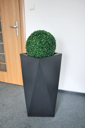 Donica Eris z wewnętrzną półką – jest to model z odlaną wewnętrzną półką na ok. 1/3 wysokości od góry (27cm). Takie rozwiązanie pozwala na sadzenie mniejszych roślin w dużych donicach. Pamiętaj, że w tym modelu półka jest odlewem wykonanym w całości z donicą i nie da się jej wyciągnąć lub później dołożyć.
