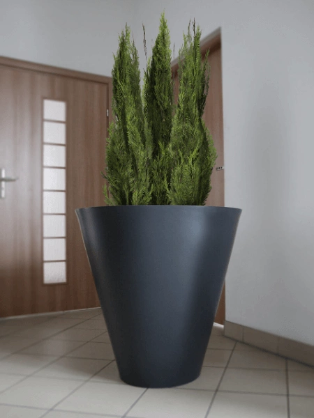 Dzięki temu donica nie blaknie, nie pęka i zachowuje swój estetyczny wygląd przez lata, nawet przy intensywnym użytkowaniu na zewnątrz. To praktyczne i ekonomiczne rozwiązanie zarówno dla firm, które potrzebują trwałych dekoracji do miejsc publicznych, jak i dla osób prywatnych, które chcą inwestować w estetykę bez konieczności częstej wymiany produktów.