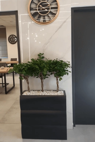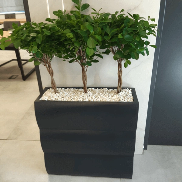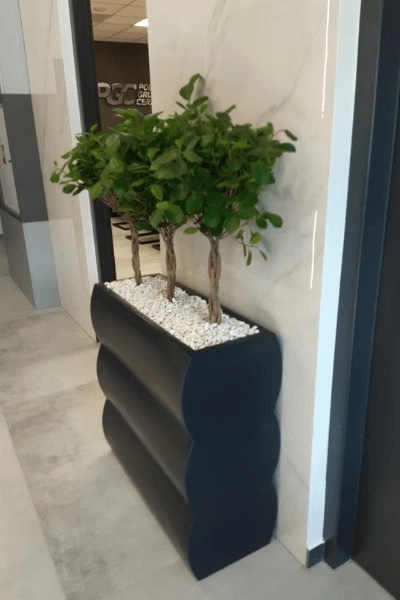 Nyx 70 to prostokątna i wysoka donica o niespotykanym kształcie. Charakterystyczne wybrzuszenia gwarantują, że nie znajdziesz czegoś podobnego na rynku. Donica Nyx 70 idealnie sprawdza się w biurach, restauracjach i innych przestrzeniach użytkowych. Możesz ją zastosować jako kompozycję z kilku donic lub postawić samotnie w dogodnym miejscu. Świetnie nadaje się do wyznaczania przestrzeniami użytkowych w biurach czy restauracjach.