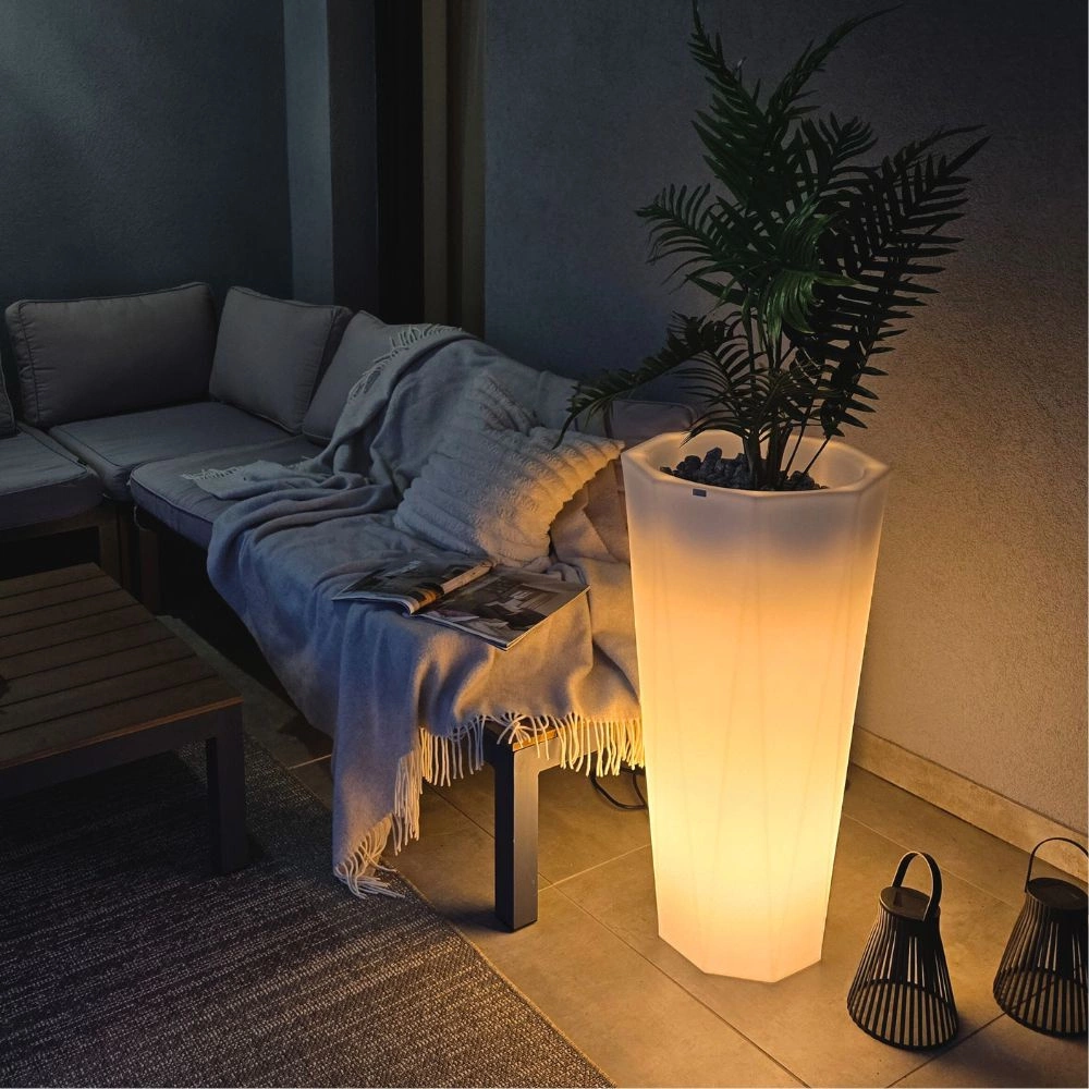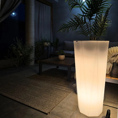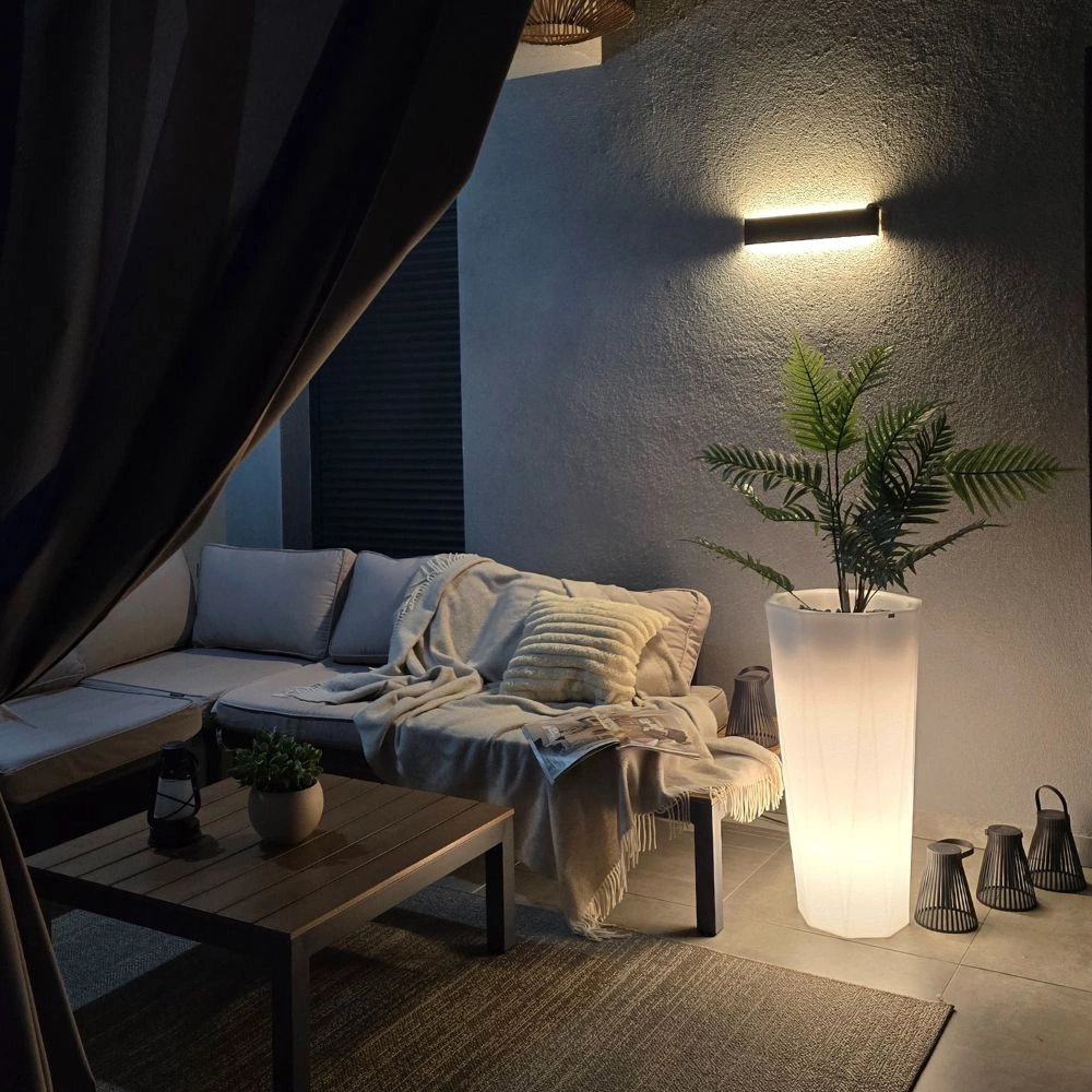Donica podświetlana Octavia z żarówką LED – jest oświetlana energooszczędną żarówką LED. Możesz wybrać wersję z ciepłą lub zimną barwą światła. Zawsze możesz też zmienić barwę światła wymieniając żarówkę na inną.
