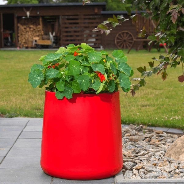 Opinie o Donica okrągła nowoczesna Zoe 50 cm z półką, czerwona