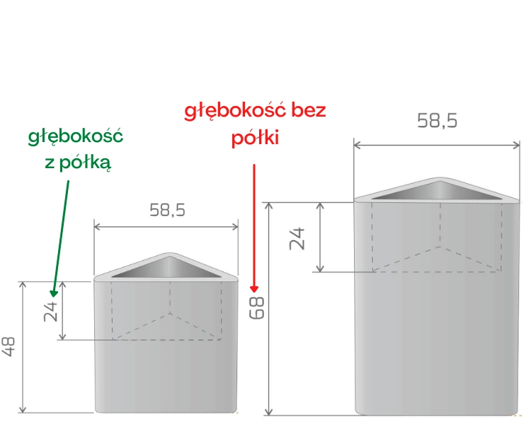 Donica Triton z wewnętrzną półką – jest to model z odlaną wewnętrzną półką na wysokości 24 cm od góry. Takie rozwiązanie pozwala na sadzenie mniejszych roślin w dużych donicach. Pamiętaj, że w tym modelu półka jest odlewem wykonanym w całości z donicą i nie da się jej wyciągnąć lub później dołożyć.