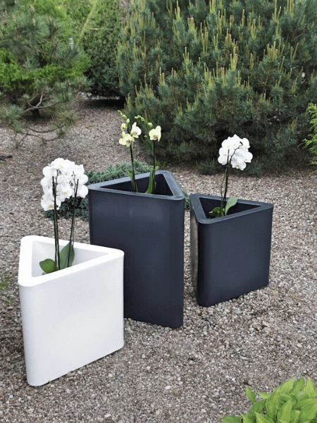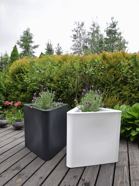 Triton to nowoczesna donica o trójkątnym kształcie. Jej forma idealnie wpisuje się w najnowsze geometryczne trendy. Jest dostępna w dwóch rozmiarach: 48 cm i 68 cm wysokości.