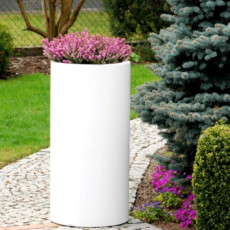 Okrągła podświetlana donica z włókna szklanego Tube 60 cm, biała