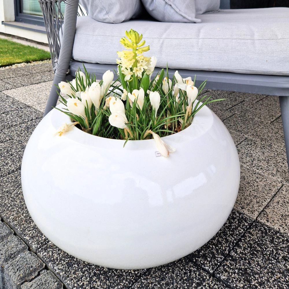 Donice Koral są produkowane z włókna szklanego, które jest nie tylko odpornym i wytrzymałym materiałem ale także bardzo eleganckim. Wykończenie w połysku lub macie, idealnie gładka struktura i zaokrąglone kanty - ta estetyka wykonania sprawia, że donice wyglądają z klasą i zwracają na siebie uwagę!