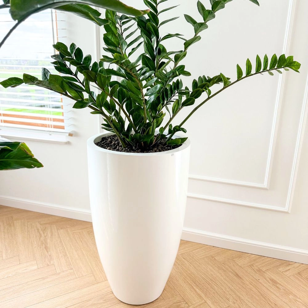Donica Tulip to wysoka donica o zaokrąglonym kształcie. Świetnie będą się w niej prezentować takie rośliny jak: zamiokulkasy, palmy, strelitzie, sansewierie, pachiry czy sztuczne trawy. Donice w połysku to idealny wybór nie tylko do wnętrz.