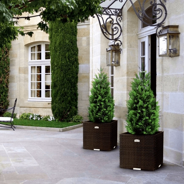 • Donica wykonana jest z wyplatanego technorattanu, który świetnie komponuje się z meblami ogrodowymi. Donice świetnie sprawdzają się też w ogródkach restauracyjnych, miejscach przestrzeni publicznej czy hotelach.