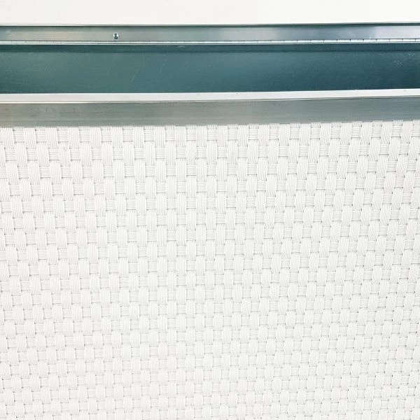 Donice wykonywane są ręcznie, z wysokiej jakości blachy ocynkowanej, która jest odporna na rdze i warunki atmosferyczne. Zewnętrzna warstwa donicy to splot technorattanowy, łączący w sobie wytrzymałość i elegancję. Uroku dodają dekoracyjne elementy aluminiowe polerowane - donica posiada dwie ozdobne listwy boczne oraz górną.