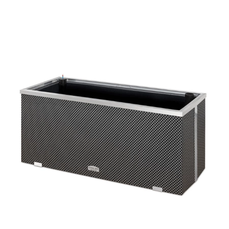 • Donica wykonana jest z wyplatanego technorattanu, który świetnie komponuje się z meblami ogrodowymi. Donice świetnie sprawdzają się też w ogródkach restauracyjnych, miejscach przestrzeni publicznej czy hotelach. Posiada system nawadniający i ocieplenie.