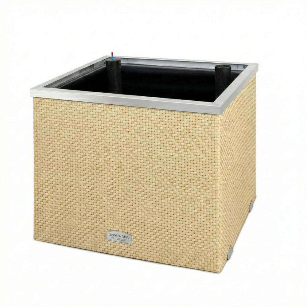 Donice wykonywane są ręcznie, z wysokiej jakości blachy ocynkowanej, która jest odporna na rdze i warunki atmosferyczne. Zewnętrzna warstwa donicy to splot technorattanowy, łączący w sobie wytrzymałość i elegancję.