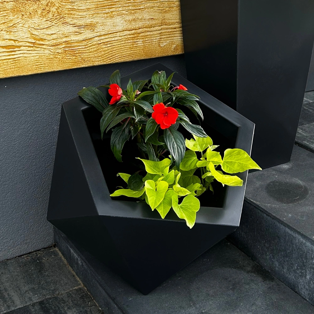 Dione to nowoczesna donica o asymetrycznym kształcie. Jej nieszablonowy kształt z pewnością przyciągnie uwagę i podkreśli wyjątkowy styl. Podstawa donicy nie przylega w całości do podłoża co dodaje jej designu i nowoczesności.