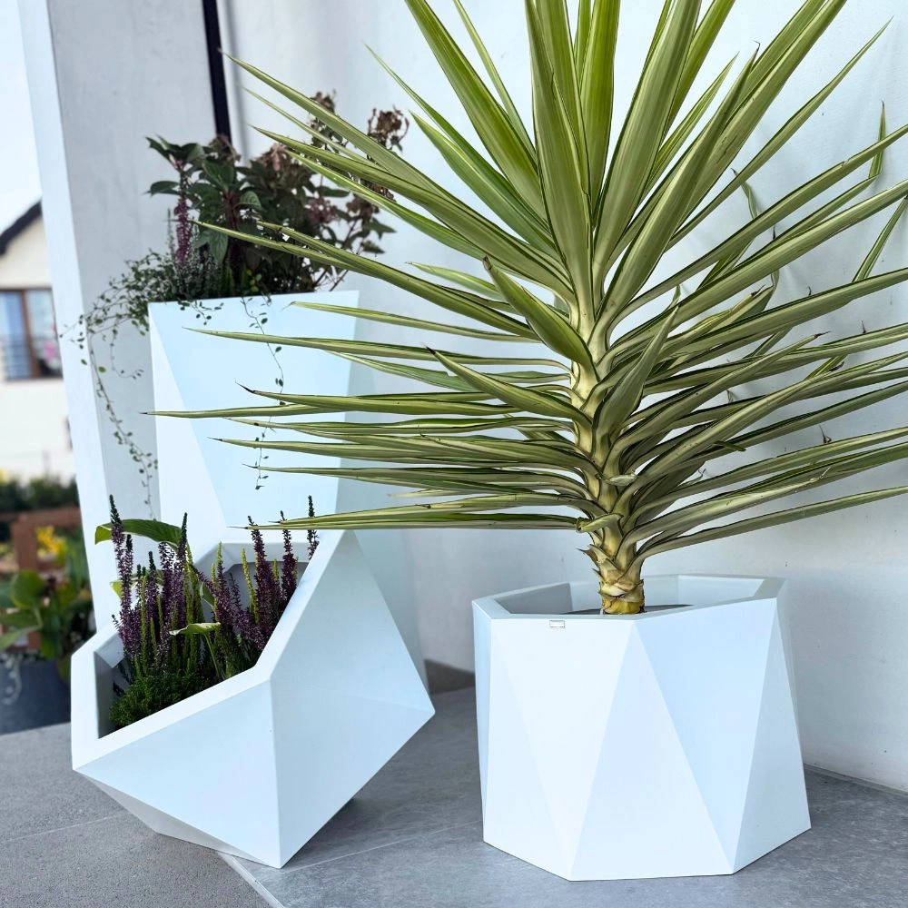 Dzięki temu donica nie blaknie, nie pęka i zachowuje swój estetyczny wygląd przez lata, nawet przy intensywnym użytkowaniu na zewnątrz. To praktyczne i ekonomiczne rozwiązanie zarówno dla firm, które potrzebują trwałych dekoracji do miejsc publicznych, jak i dla osób prywatnych, które chcą inwestować w estetykę bez konieczności częstej wymiany produktów.