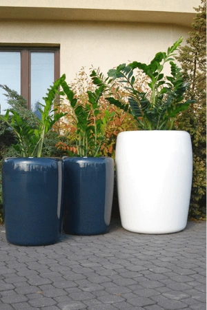 • Duża okrągła donica z włókna szklanego. Jest to donica Premium, którą możesz kupić w wielu wersjach wykonania: z oświetleniem, z wkładką, z kółkami, a nawet wysadzaną kryształkami Swarovskiego.
