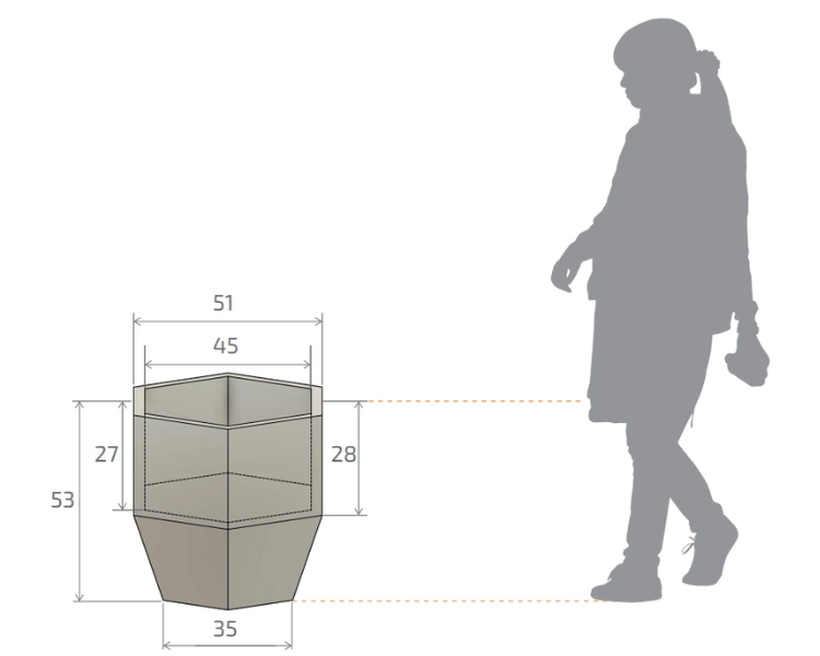 Kalas to duża donica o geometrycznym kształcie. Jest wykonana z polietylenu odpornego na warunki atmosferyczne. Duże rozmiary donicy sprawiają, że świetnie nadaje się do ogrodu i większych przestrzeni. Kalas to idealna donica do dużych drzewek i krzewów.