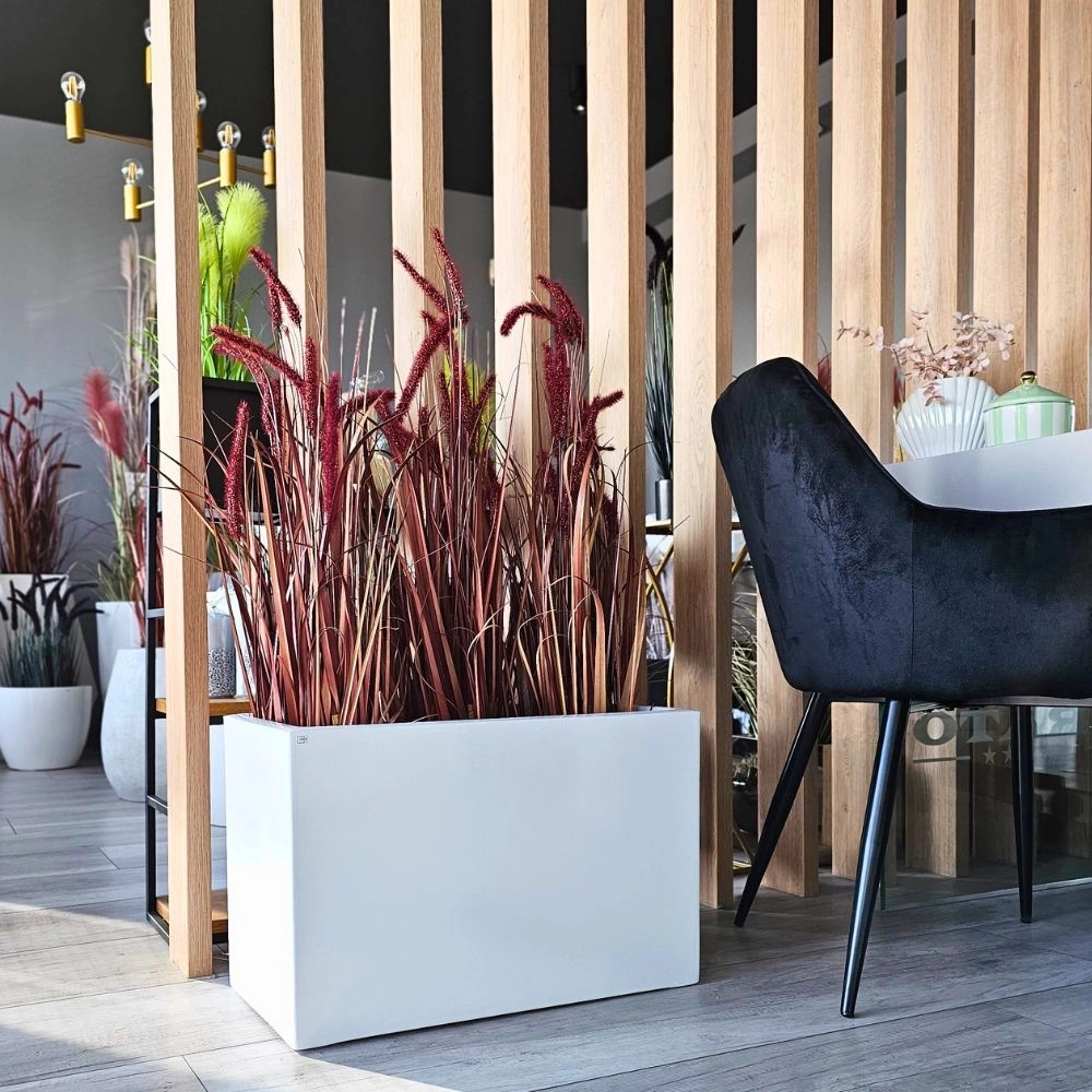 w biurze posłużą do wyznaczania granic pomiędzy strefami użytkowymi. Wysoki połysk włókna szklanego świetnie pasuje do nowoczesnych przestrzeni, a zieleń pomaga w odprężeniu i poprawia wydajność pracy.