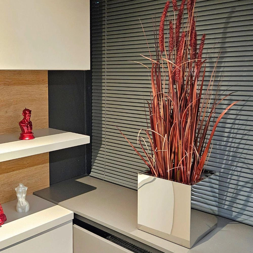 Nasza seria donic Glossy to połączenie funkcjonalności z niezwykłym efektem w stylu glamour. Lustrzane donice są wykonane z wysokiej jakości stali nierdzewnej o grubości 0,8 mm. Dzięki temu donice są wytrzymałe i stabilne.