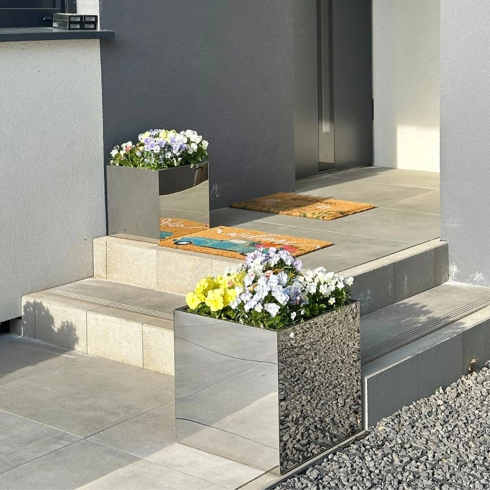 Nasza seria donic Glossy to połączenie funkcjonalności z niezwykłym efektem w stylu glamour. Lustrzane donice są wykonane z wysokiej jakości stali nierdzewnej o grubości 0,8 mm. Dzięki temu donice są wytrzymałe i stabilne.