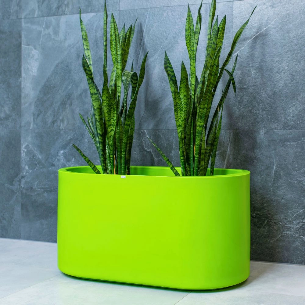 Donica Leto wyróżnia się swoim unikalnym designem, który łączy funkcjonalność z estetyką. Jej zaokrąglone kształty nadają jej delikatności i harmonii, idealnie komponując się z różnymi aranżacjami przestrzeni. Dzięki swojej podłużnej formie, donica ta jest idealna do eksponowania roślin o różnorodnych kształtach i rozmiarach, od bujnych kwiatów po smukłe rośliny zielone.