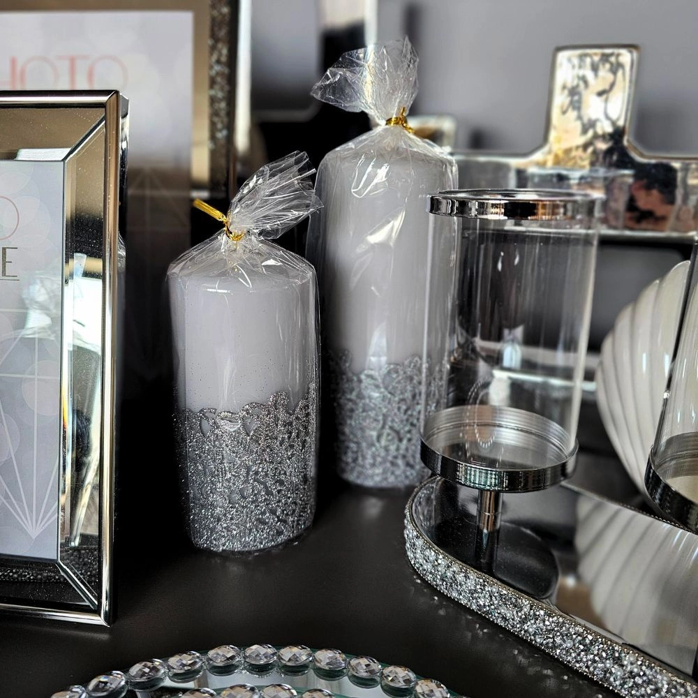 Eleganckie świeczki Koronka charakteryzują się pięknym, błyszczącym wykończeniem, natomiast dolna część świeczek zdobiona jest brokatową koronką 3D, co dodaje im wyjątkowego charakteru. Zaletą tych świeczek jest przede wszystkim ich uniwersalność – doskonale pasują do różnych stylów wnętrzarskich, od nowoczesnych, przez glamour, aż po klasyczne aranżacje.