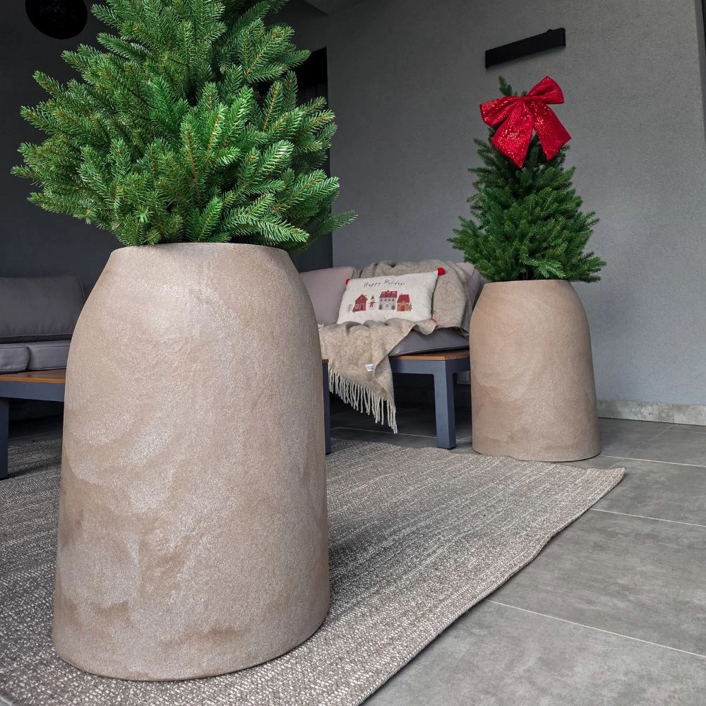 Choinki zamiast tradycyjnego stelaża posiadają funkcjonalną doniczkę. Możesz ją udekorować np. ozdobnymi kamieniami, korą, mchem czy ozdobami świątecznymi.