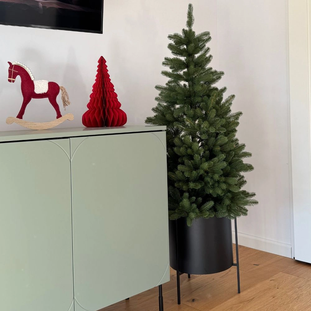 Choinki zamiast tradycyjnego stelaża posiadaj funkcjonalną donicę, którą możesz dociążyć jeśli choinka ma stać na zewnątrz.
