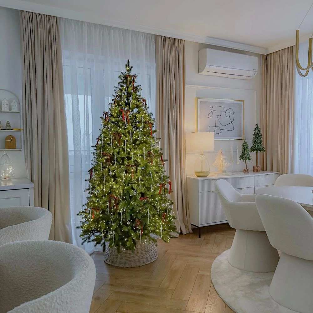 Nasze choinki są dopracowane w każdym detalu. Do choinki otrzymujesz stabilny, gruby, drewniany stojak. To zupełne przeciwieństwo plastikowych podstaw dostępnych w marketach – zamiast ukrywać stojak pod materiałem czy pudełkami, możesz go z dumą wyeksponować. Drewniana podstawa sprawia, że całość wygląda naturalnie, luksusowo i ponadczasowo.