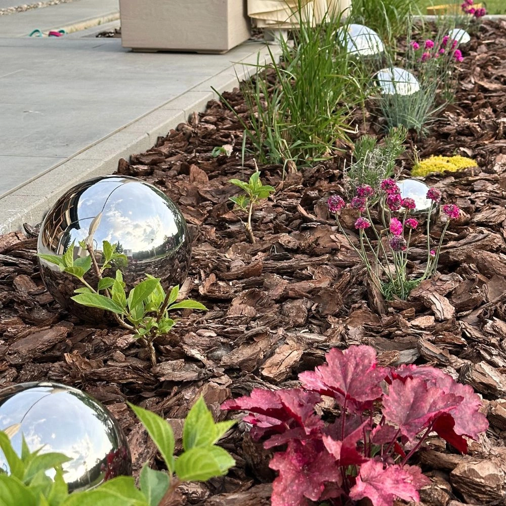 Srebrne kule wykonane są z wysokiej jakości stali nierdzewnej. Stal ma grubość 0,5 mm dzięki czemu jest trwała i wytrzymała na uszkodzenia mechaniczne oraz niekorzystne warunki atmosferyczne.