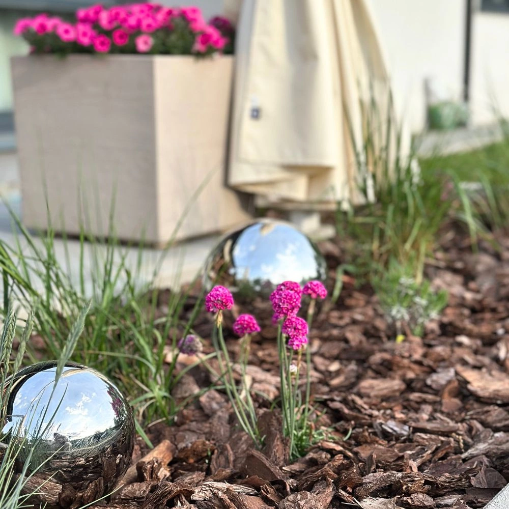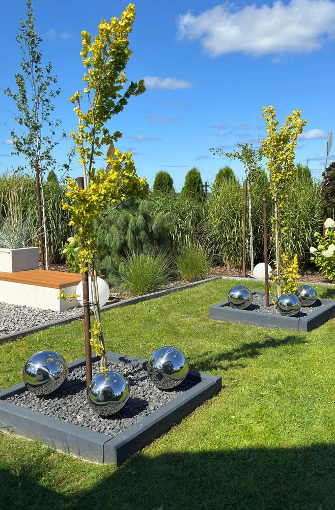 Lustrzana kula doskonale sprawdza się w przestrzeniach otwartych - w ogrodzie czy przed budynkami. Ma formę kuli, nie jest ścięta przy podstawie.