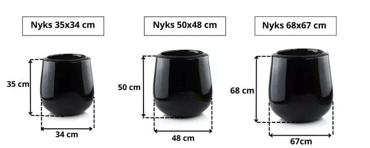 Donicę Nyks z włókna szklanego możesz zamówić w 1 z 3 standardowych wielkości: