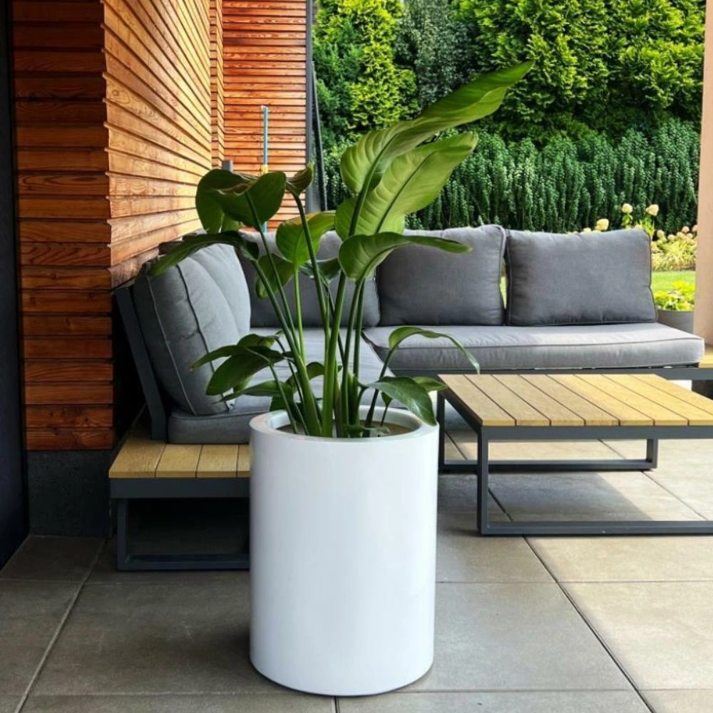 Okrągła donica Ring to połączenie nowoczesnego designu i wyjątkowej trwałości. Jej minimalistyczny kształt i elegancka, błyszcząca powierzchnia doskonale wkomponowują się w przestrzenie zarówno domowe, jak i biurowe. Idealna dla dużych roślin, podkreśla ich piękno, nadając wnętrzu nowoczesny i stylowy charakter.