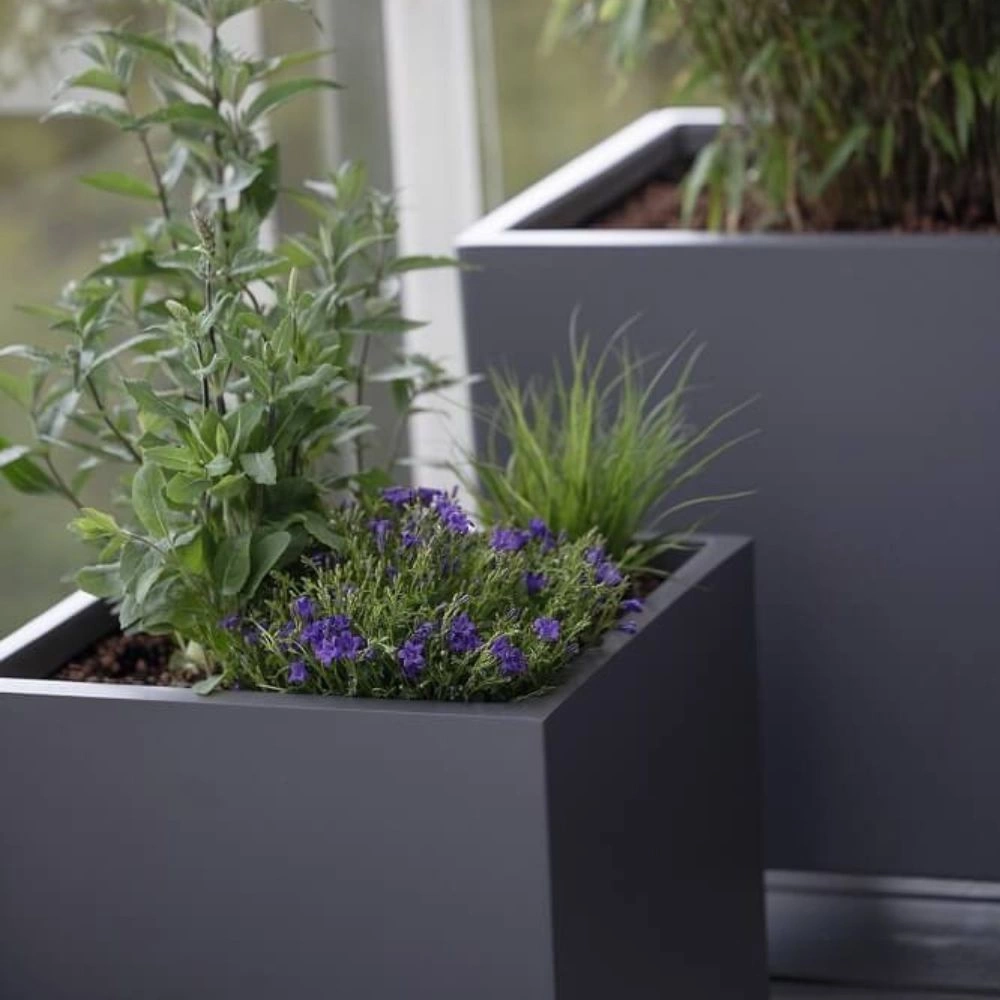Donice Box są produkowane z włókna szklanego, które jest nie tylko odpornym i wytrzymałym materiałem ale także bardzo eleganckim. Wykończenie w połysku lub macie, idealnie gładka struktura i lekko zaokrąglone kanty - ta estetyka wykonania sprawia, że donice wyglądają z klasą i zwracają na siebie uwagę!