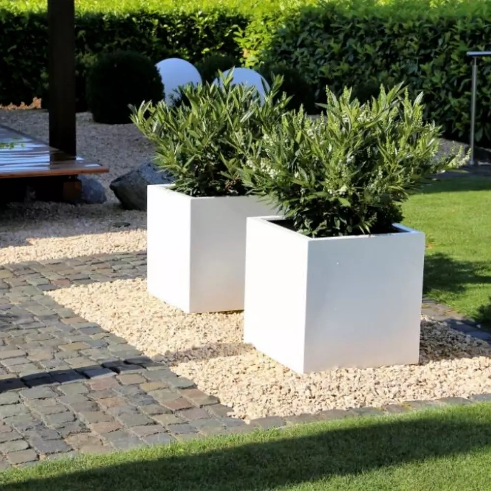 Duza donica kwadratowa w ogrodzie