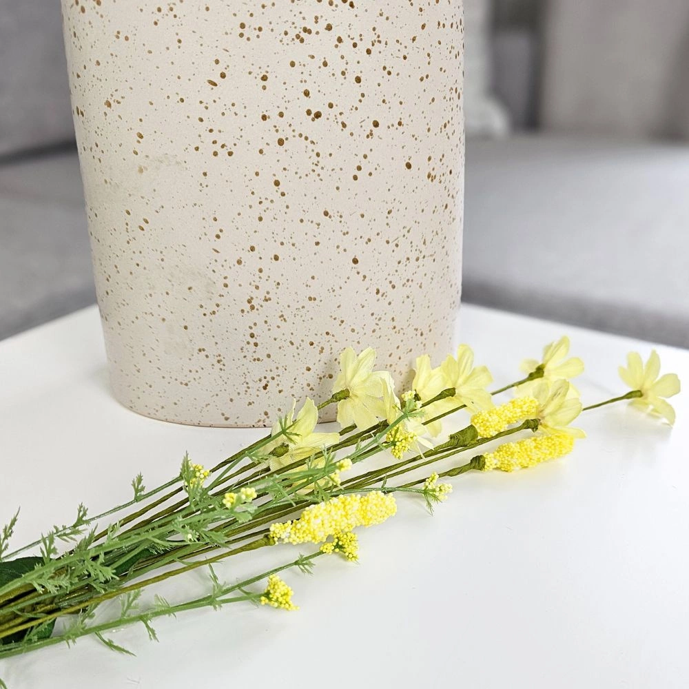 Sztuczna gałązka z delikatnymi i drobnymi kwiatami to subtelna dekoracja, która wniesie do wnętrza naturalną lekkość i świeżość – bez potrzeby podlewania.