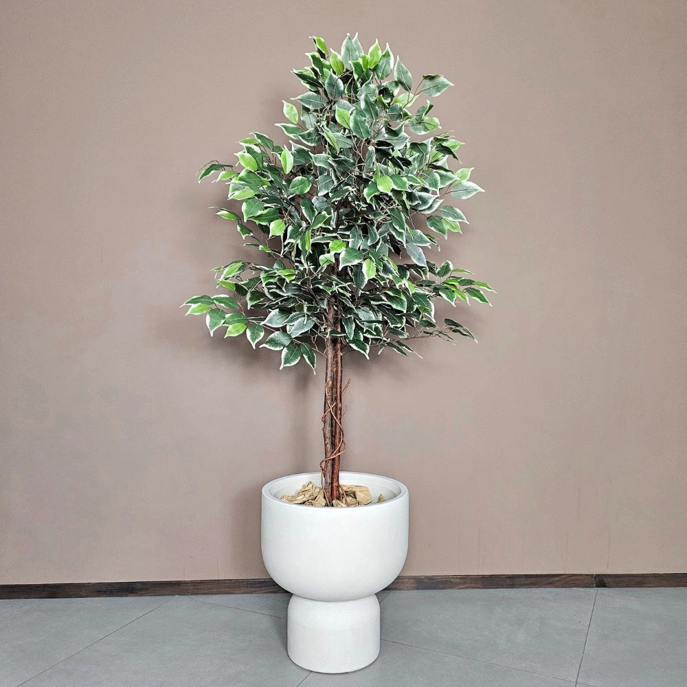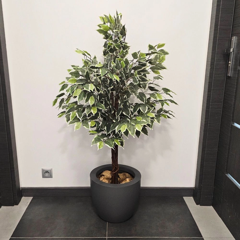 Sztuczny fikus Benjamina w doniczce to realistyczna dekoracja, która wprowadzi do wnętrza naturalny charakter – bez potrzeby pielęgnacji. Gęste, zielone liście wiernie odwzorowują wygląd żywej rośliny, a stabilna doniczka ułatwia ustawienie w dowolnym miejscu.
