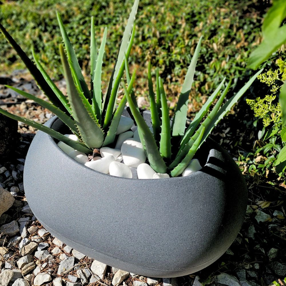 Doniczka Kamień to model o miękkich, opływowych kształtach inspirowanych naturalnym kamieniem. Jej płynna forma pięknie kontrastuje z geometryczną architekturą, nadając przestrzeni miękkości. Taki kształt nie tylko przyciąga wzrok, ale też zapewnia stabilność. Choć wizualnie sprawiają wrażenie masywnych, są lekkie, co ułatwia ich przenoszenie i dowolne aranżowanie.