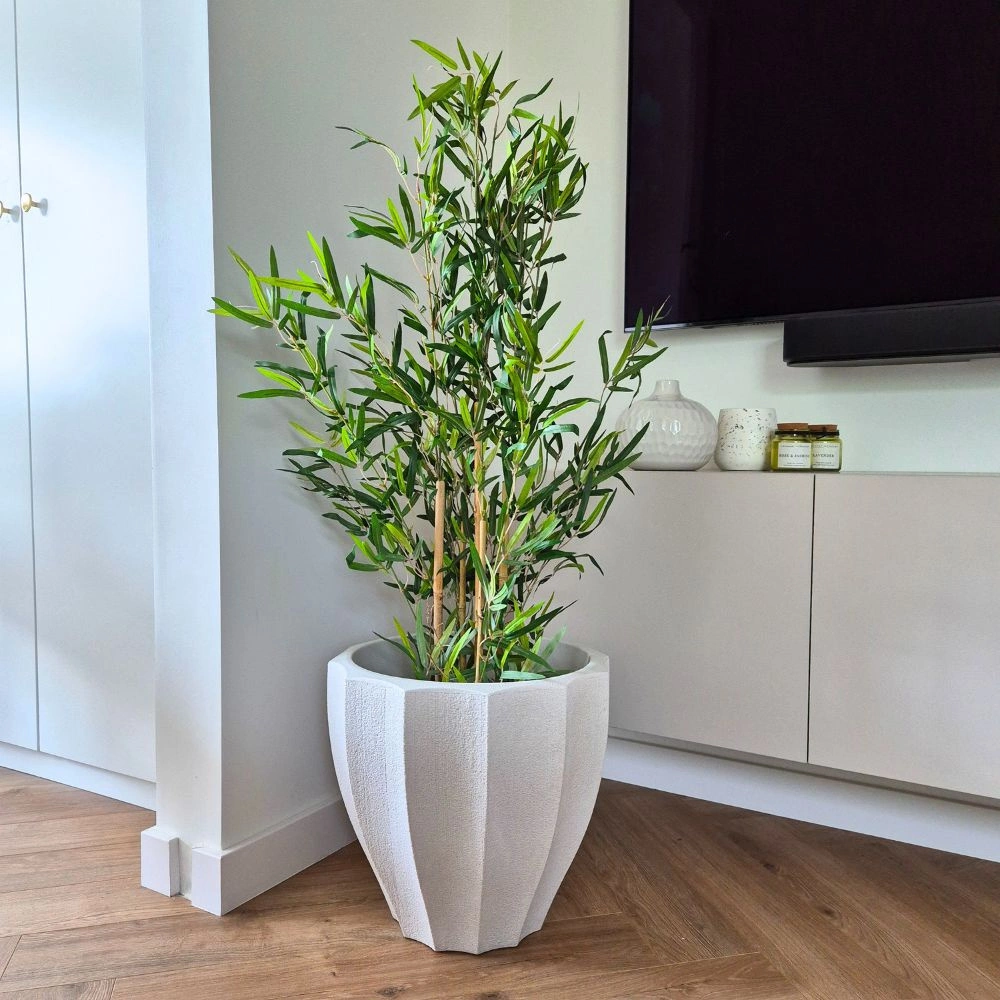 Kremowa donica Rona w salonie