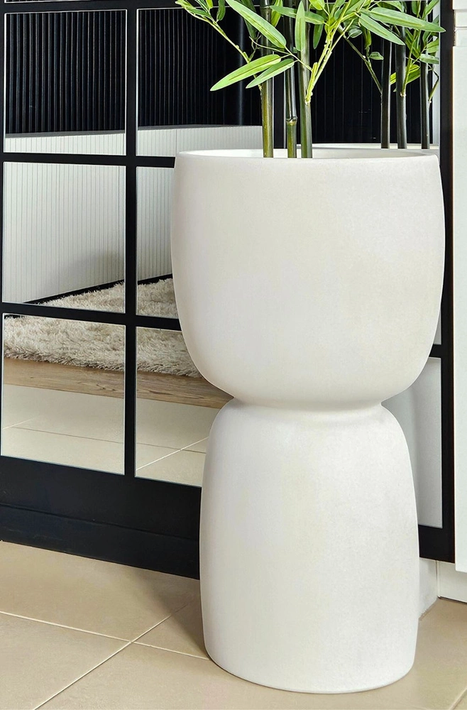 Donice na taras Mono i Duala to doskonały wybór dla miłośników nowoczesnego designu i naturalnej estetyki. Kolekcja łączy subtelność owalnych kształtów z wyrazistością geometrycznych form, inspirowanych naturą i klasycznym rzemiosłem garncarskim.