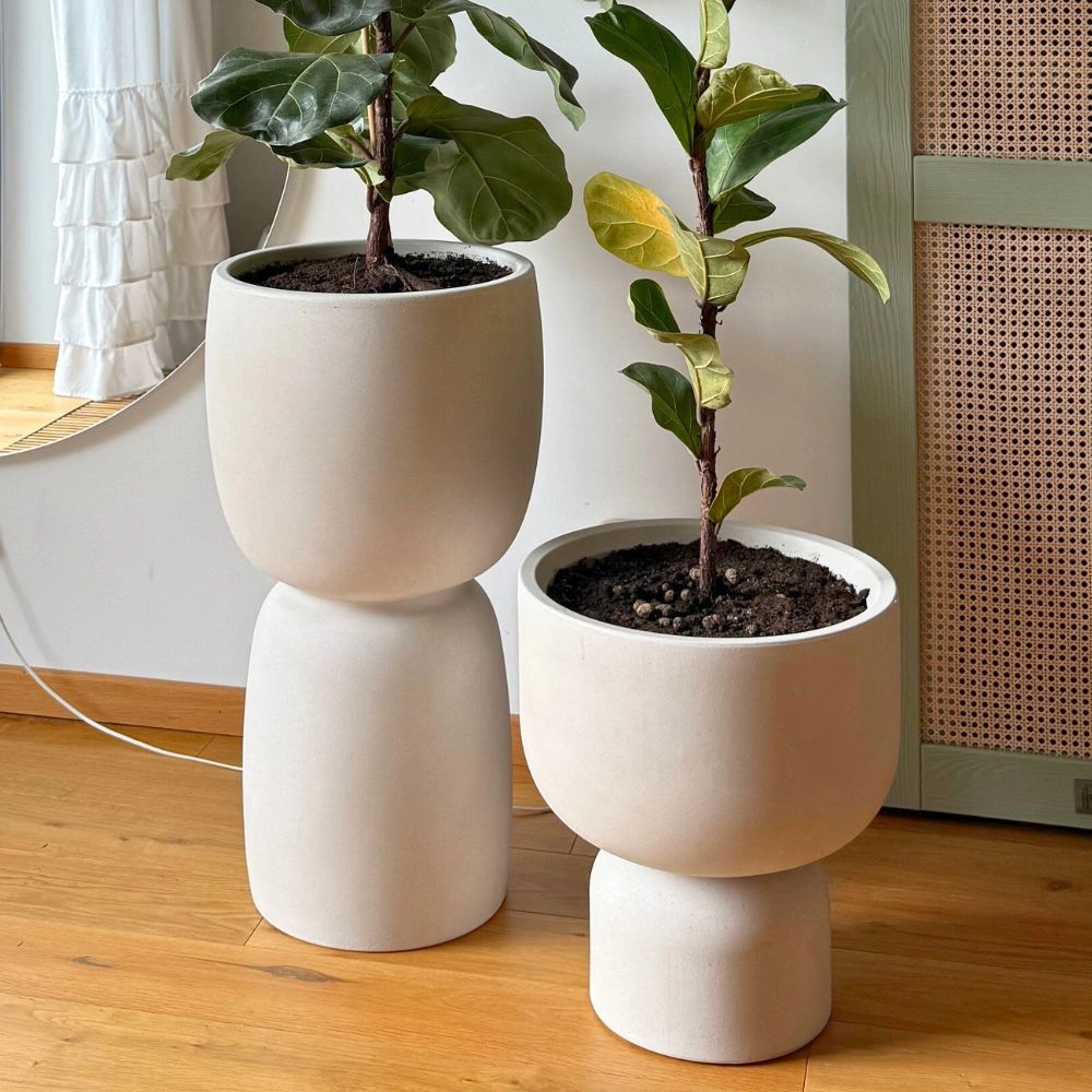 Donica Mono ma kształt kielicha, który jest osadzony na niskiej i szerokiej nóżce. Z kolei donica Duala ma dwustronną konstrukcję! Dzięki przemyślanemu projektowi, donicę można ustawić zarówno tradycyjnie – szerszą podstawą do dołu – jak i odwrotnie, zwężoną stroną opartą o podłoże. Każda z tych opcji daje zupełnie inny efekt wizualny!