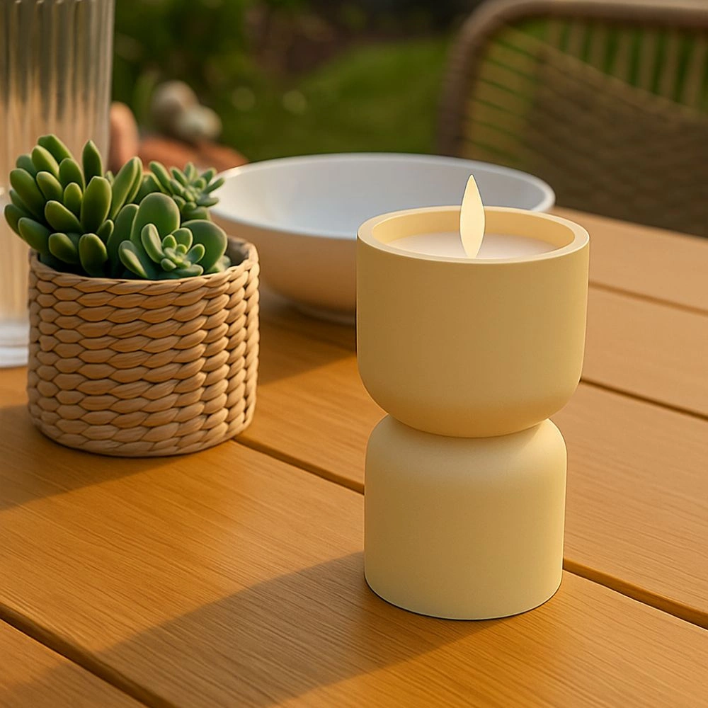 Świeca LED Glow to idealny dodatek do aranżacji wnętrz i przestrzeni zewnętrznych. Świetnie sprawdzi się jako element dekoracyjny na wyjątkowe okazje, romantyczne wieczory lub codzienne relaksujące chwile. Jej delikatne światło wprowadzi do otoczenia ciepło, styl i elegancję – niezależnie od pory roku.