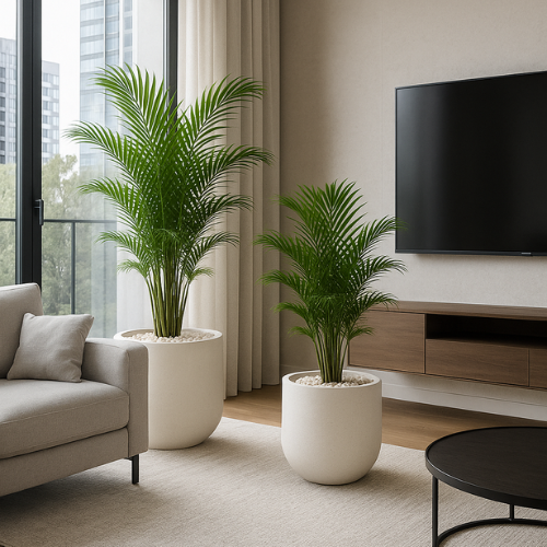 Rośliny egzotyczne lub kompaktowe palmy: kencja, chamedora, strelitzia w wersji mini,