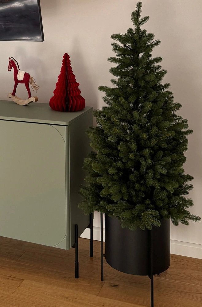 Choinki zamiast tradycyjnego stelaża posiadaj funkcjonalną donicę, którą możesz dociążyć jeśli choinka ma stać na zewnątrz.
