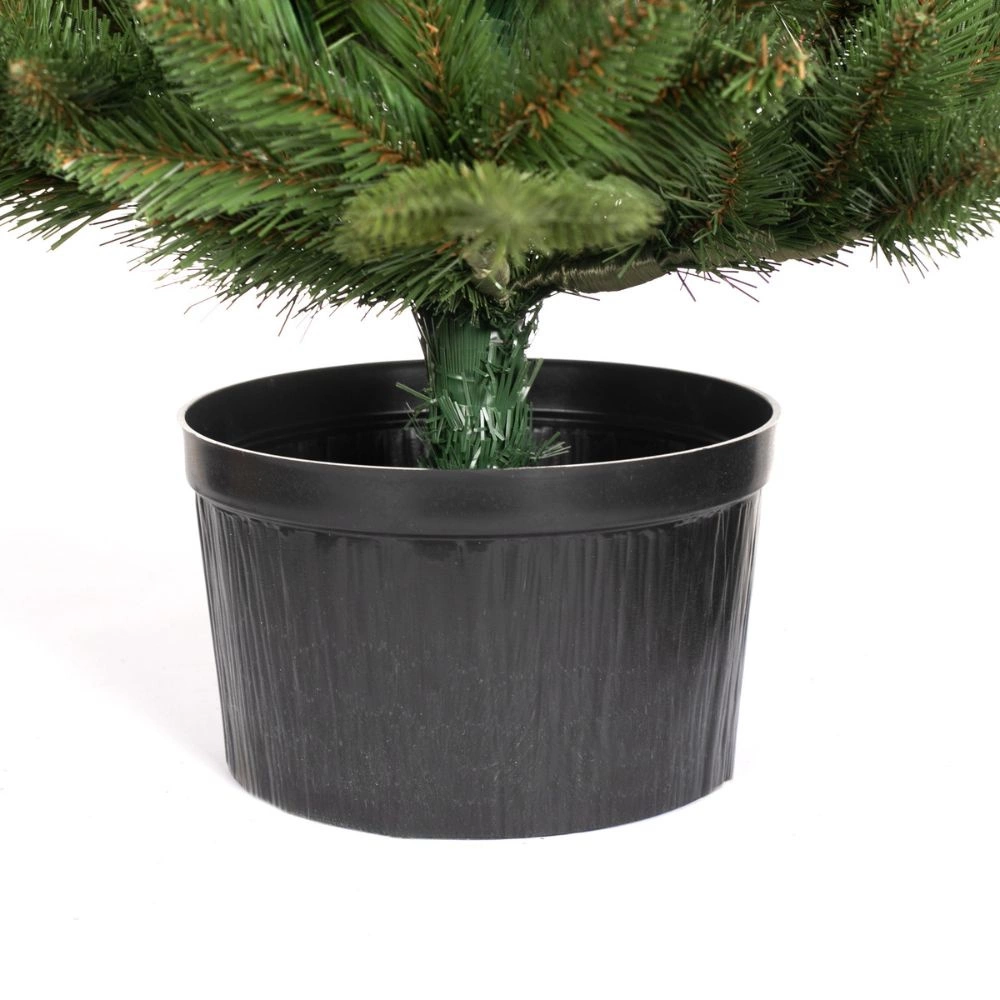 Doniczka ma wymiary: średnica 23 cm, wysokość 15 cm. Wysokość choinki jest podawana razem z doniczką - pień sięga samego dna doniczki, dzięki czemu choinka nie traci na swojej rzeczywistej wysokości. Wysokość choinki w doniczce jest taka sama jak wysokość choinki na stelażu.