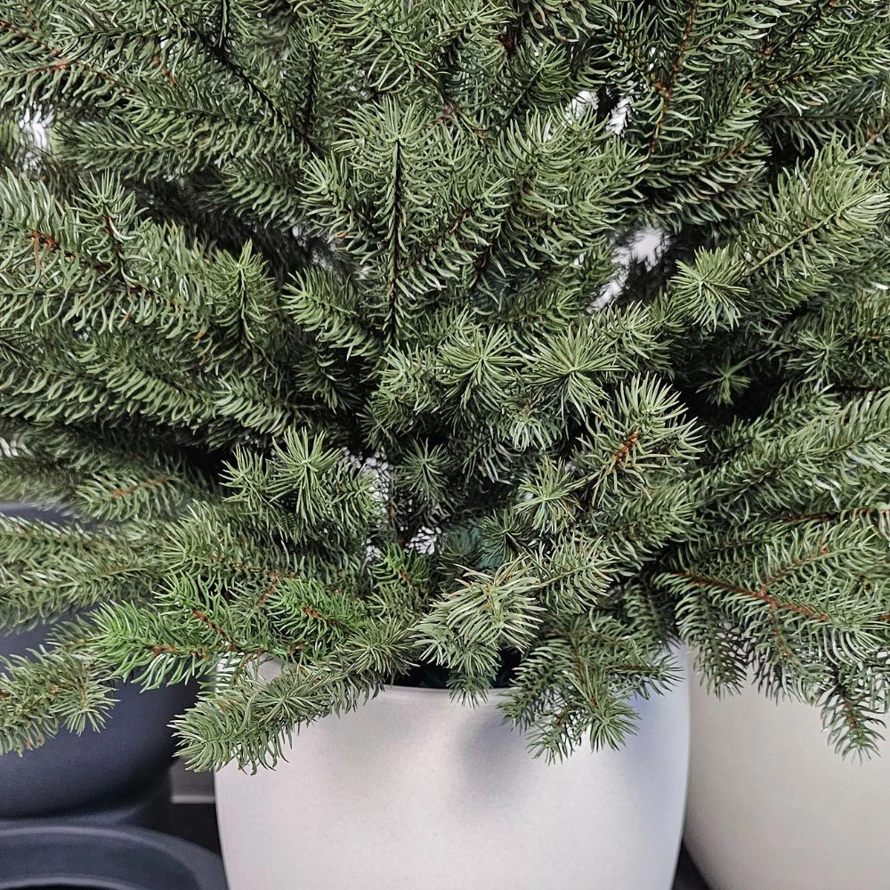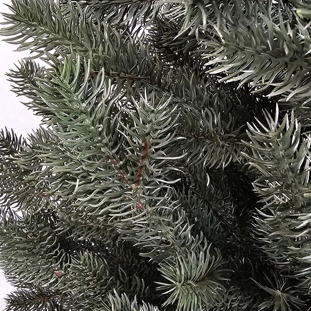 Gałązki są gęste i rozłożyste. Każda jest formowana w technologii 3D, dzięki czemu igliwie ma naturalną miękkość, matową zieleń oraz perfekcyjnie odwzorowany kształt. Są mocowane za pomocą nici jedwabnej, co eliminuje nieestetyczne i niebezpieczne, wystające druty z gałęzi. Są miękkie i łatwe do modelowania.