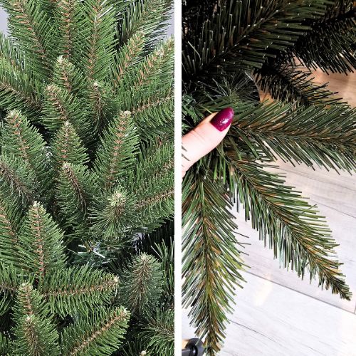 Igiełki świerku zostały wykonane z foli PVC. Są elastyczne, wytrzymałe i nie ulegają odkształceniu. Eliminuje to problem wypadających i zżółkniętych igieł, charakterystycznych dla żywych drzewek.