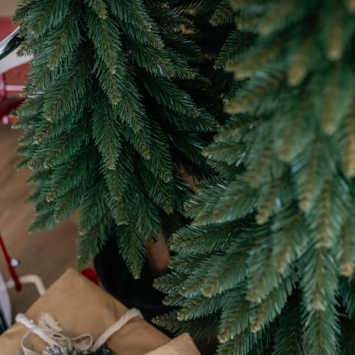Igiełki świerku zostały wykonane z foli PVC. Są elastyczne, wytrzymałe i nie ulegają odkształceniu. Eliminuje to problem wypadających i zżółkniętych igieł, charakterystycznych dla żywych drzewek.
