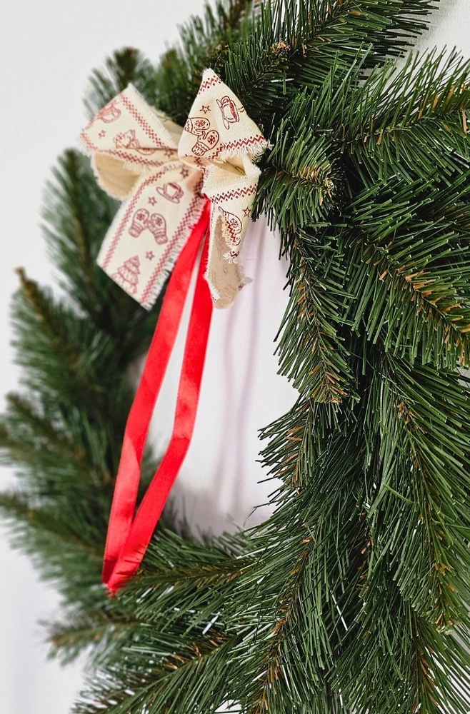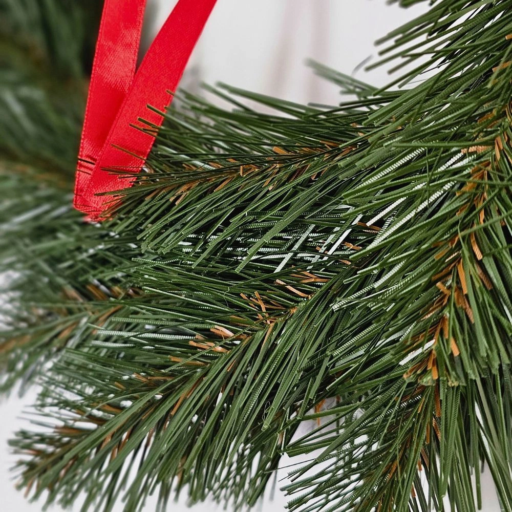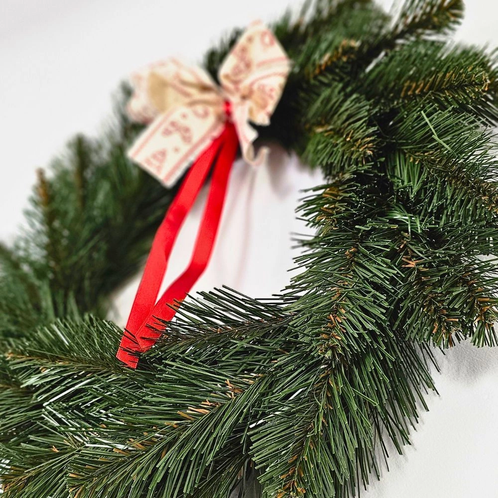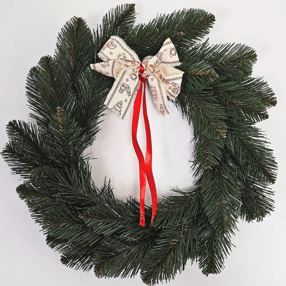 Wieniec wykonany jest z materiałów najwyższej jakości, które gwarantują odporność na deszcz, mróz i wiatr. Dzięki temu możesz bez obaw powiesić go na drzwiach wejściowych, bramie czy na tarasie - przez cały okres świąteczny zachowa swój świeży, naturalny wygląd.