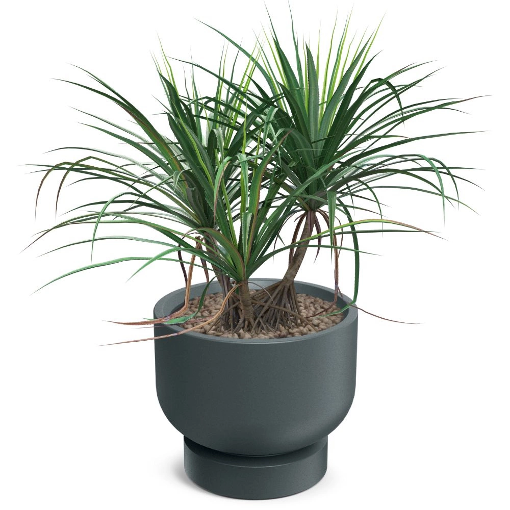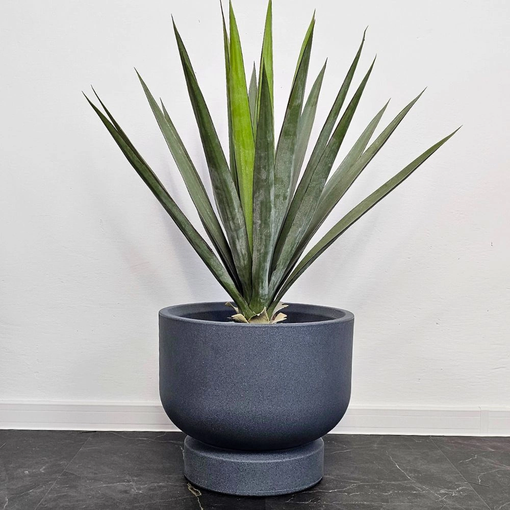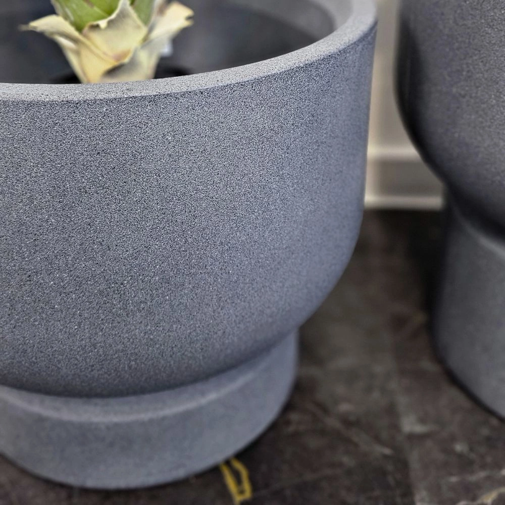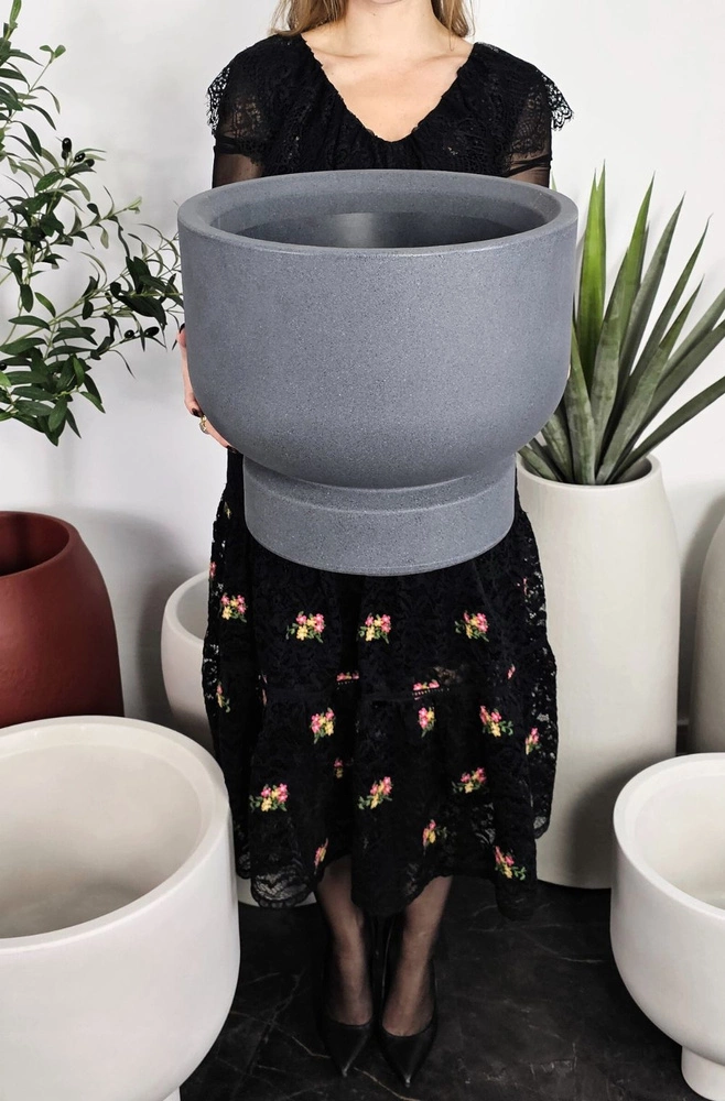 Doniczka na nóżce Baso zachwyca architektoniczną formą i wyrazistą sylwetką – wysoki korpus opiera się na cylindrycznej podstawie, tworząc nowoczesną kompozycję z mocnym akcentem. Jej matowa powierzchnia przypomina strukturę naturalnego kamienia, dodając elegancji każdemu wnętrzu. Idealna do wyeksponowania smukłych roślin, takich jak juka, sansewieria czy palmy, które podkreślą jej geometryczny charakter.