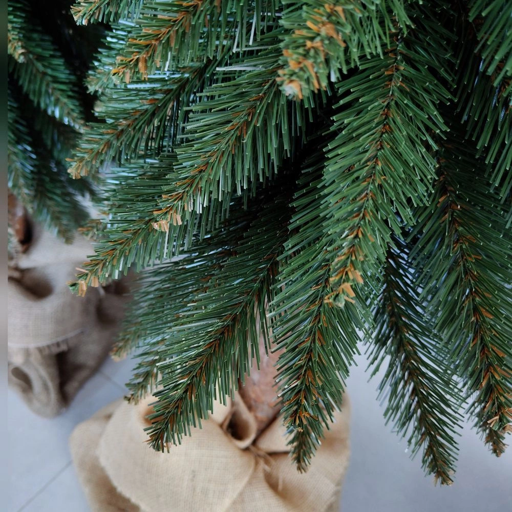 Igiełki świerku zostały wykonane z foli PVC. Są elastyczne, wytrzymałe i nie ulegają odkształceniu. Eliminuje to problem wypadających i zżółkniętych igieł, charakterystycznych dla żywych drzewek.